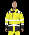EN343 3:1 Waterproof 8000mm, Breathable 3000mvp, Windproof. Soft-feel printed safety body bands. Tear release and part elasticised cuff. Adjustable foldaway hood. Tear release front pocket and stormflap. Zip chest pockets. Black colour contrast. Quilted lining. Stand-up collar. Taped seams. Hangtag. Ready to brand - tag free. EN ISO 20471:2013+A1-2016 - Class 2. RIS-3279-TOM - Class 2 (Orange only).